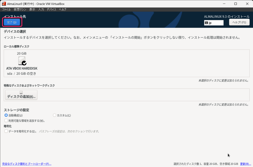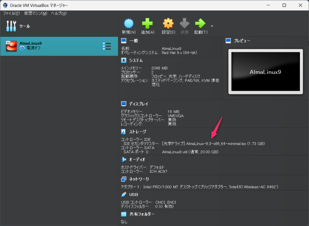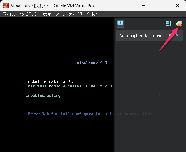 VirtualBoxで作成した仮想マシンにAlmaLinux9をインストールしていきます。