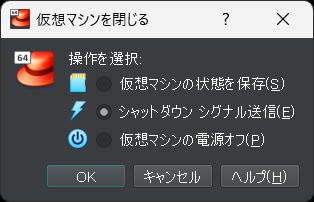 シャットダウン シグナル送信を選択してOKを押します。