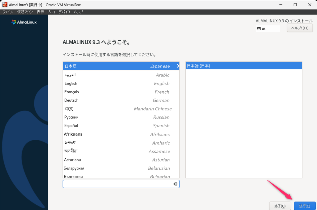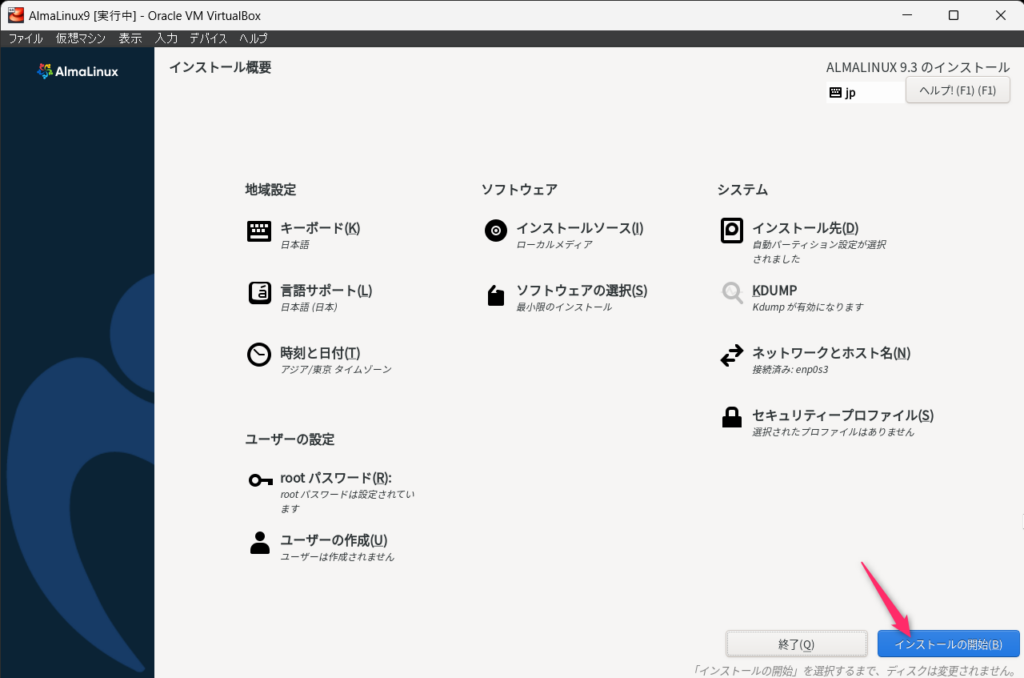 AlmaLinux9のインストール