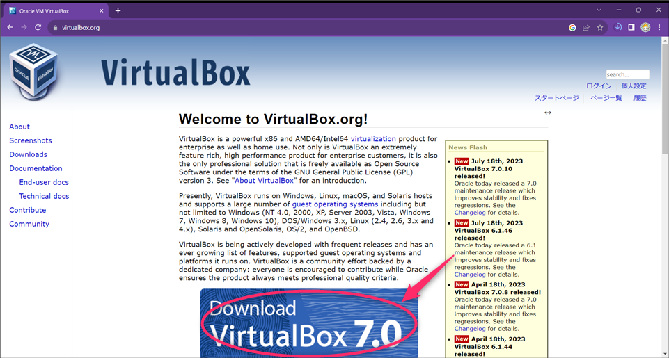Download VirtualBox 7.0をクリック