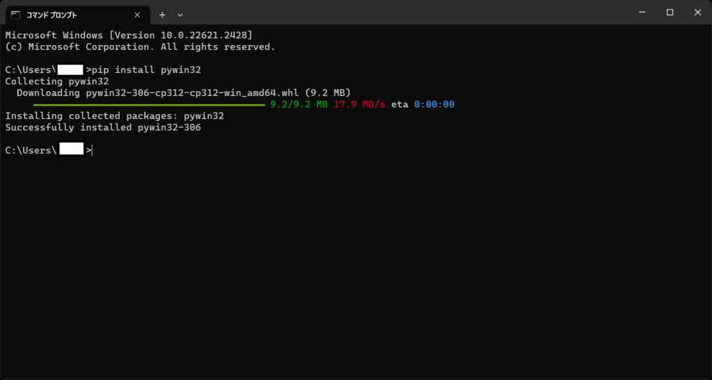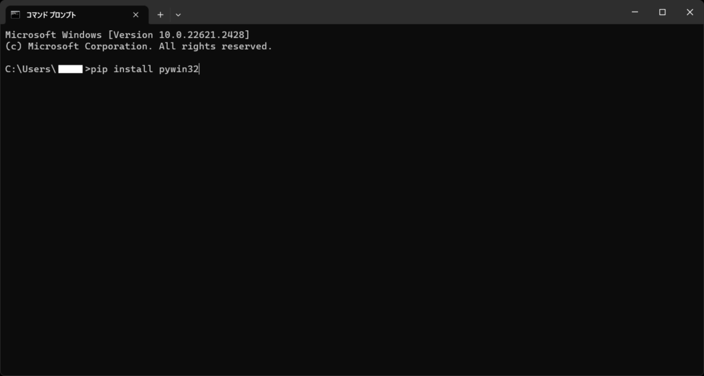 つづいてpywin32のインストールですが、コマンドプロンプトで以下のコードを実行します。