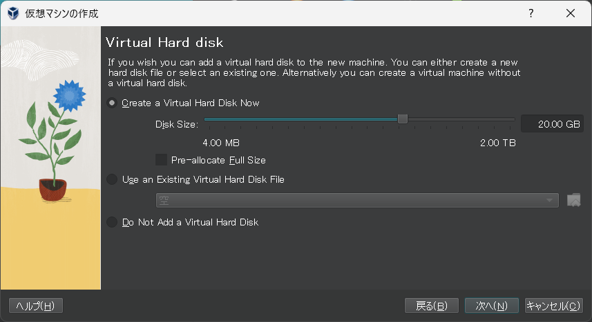 VirtualBoxで仮想マシンを作成する